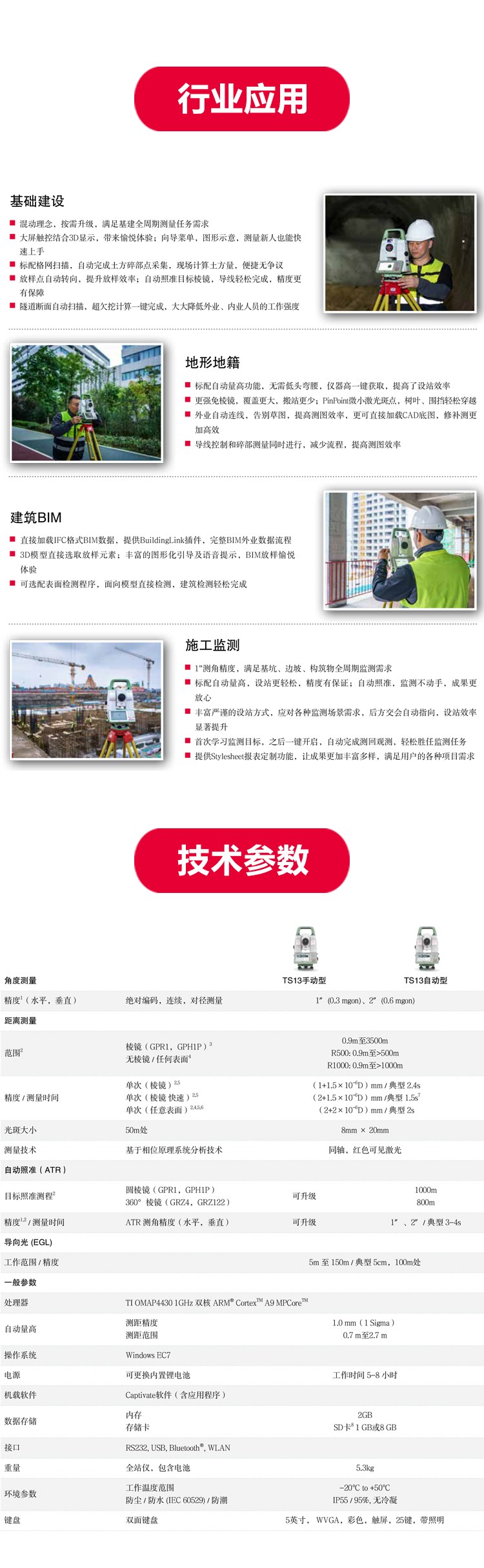 徠卡TS13自動(dòng)型全站儀是徠卡測(cè)量為響應(yīng)用戶多樣化的自動(dòng)化需求而推出,在保持一貫的高品質(zhì)基礎(chǔ)上,標(biāo)配ATR自動(dòng)照準(zhǔn)和自動(dòng)量高功能,按需靈活選配自動(dòng)搜索和棱鏡鎖定功能。搭載Captivate機(jī)載系統(tǒng),暢享豐富本地化應(yīng)用。真正做到“把錢花在刀刃上”。